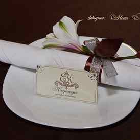 При комплексном оформлении свадьбы в студии декора Елены Макаровойоформление выездной росписи, украшение зала, карточки рассадки, бонбоньерки и прочей полиграфии для свадьбы) — в подарок букет невесты.